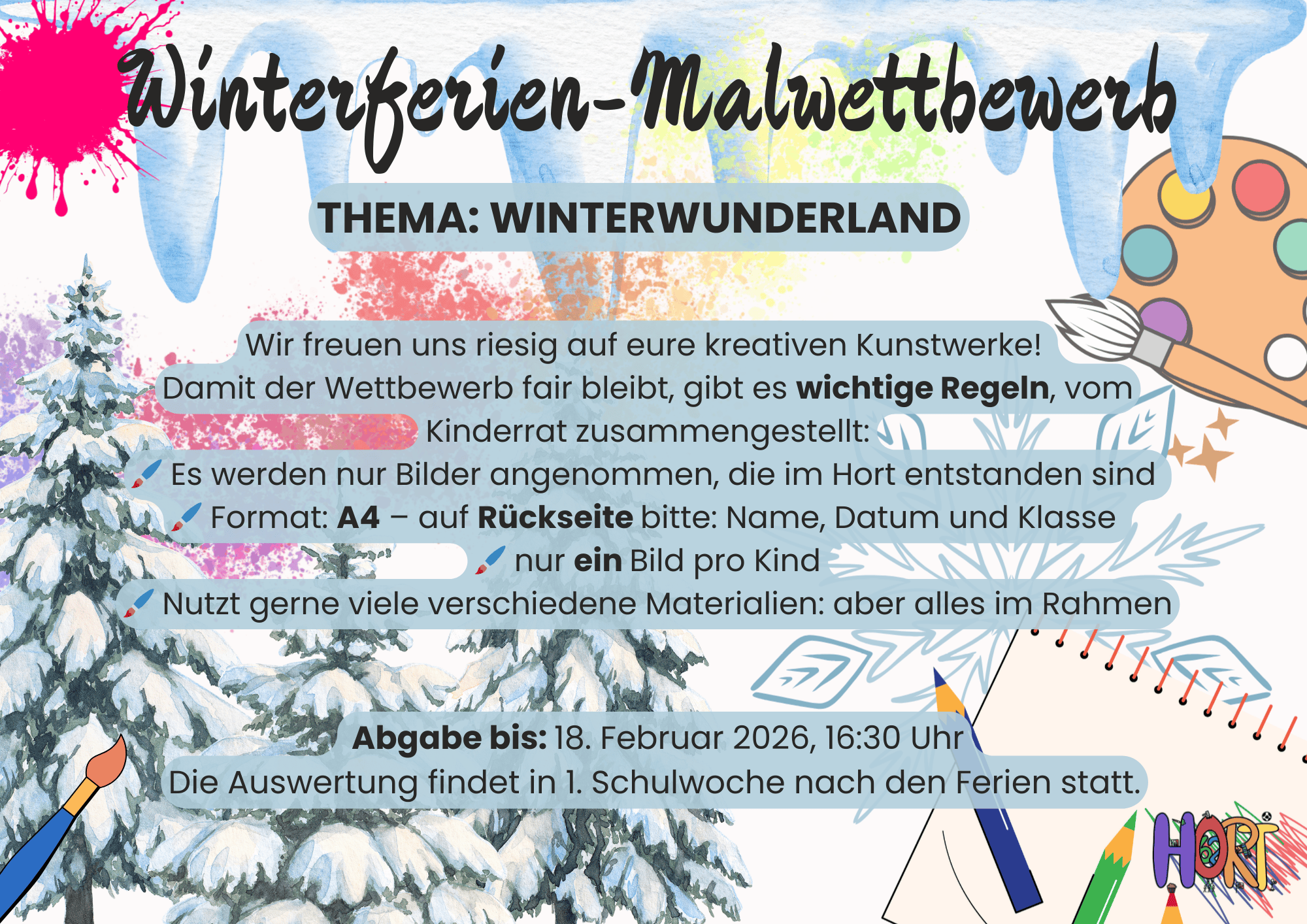 Traditionell findet auch in diesen Winterferien unser Malwettbewerb statt. Wir freuen uns jetzt schon auf die künstlerischen Werke.